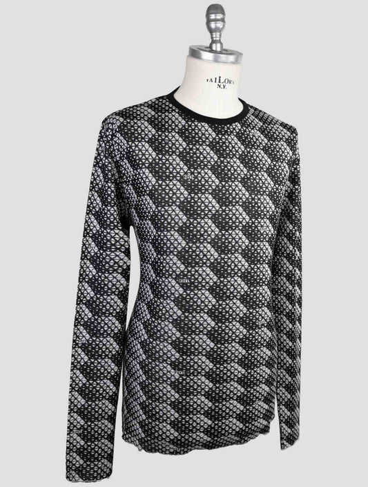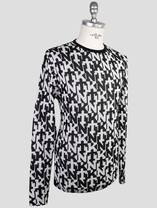 KNT Kiton Black White Cashmere Cotton Crewneck Sweater Italy