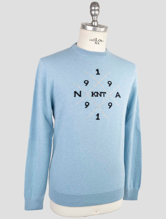 Kiton KNT Light Blue Virgin Wool Crewneck Sweater Men's
