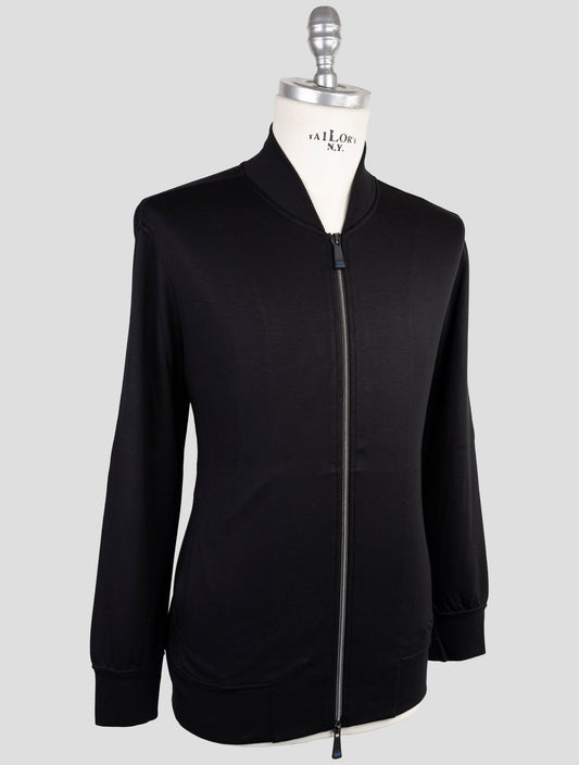 Kiton KNT Black Viscose Full Zip Sweater - Made in Italy