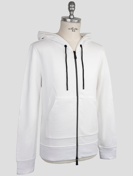 Kiton KNT Premium White Cotton Full Zip Sweater - Italian Made
