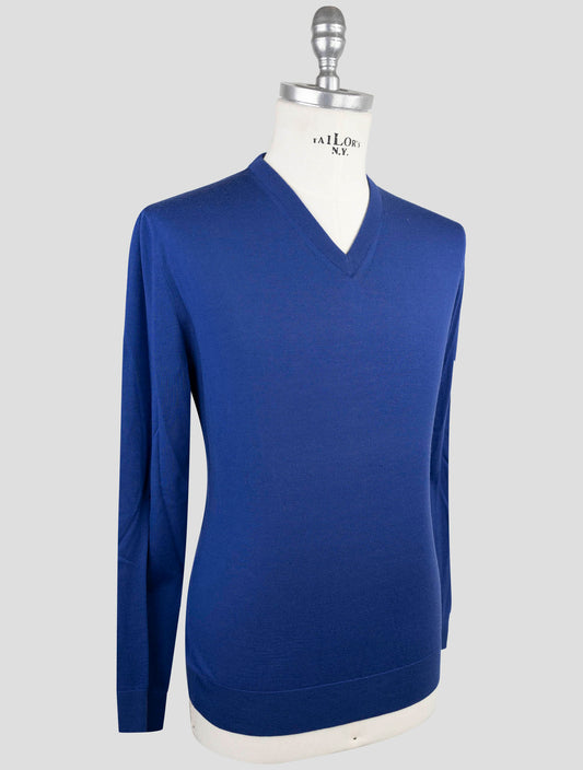 Kiton Luxury Blue Cashmere Silk V-Neck Sweater - Italian Made