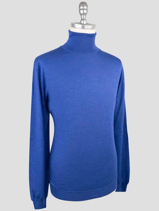 Kiton Blue Cashmere Silk Turtleneck Sweater Men's Italian Luxury
