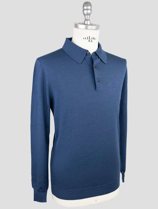 Kiton Blue Cashmere Silk Polo Sweater - Italian Luxury Knitwear