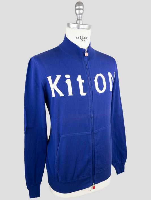 Kiton Blue Cotton Full Zip Sweater - Italian Made Luxury Knitwear