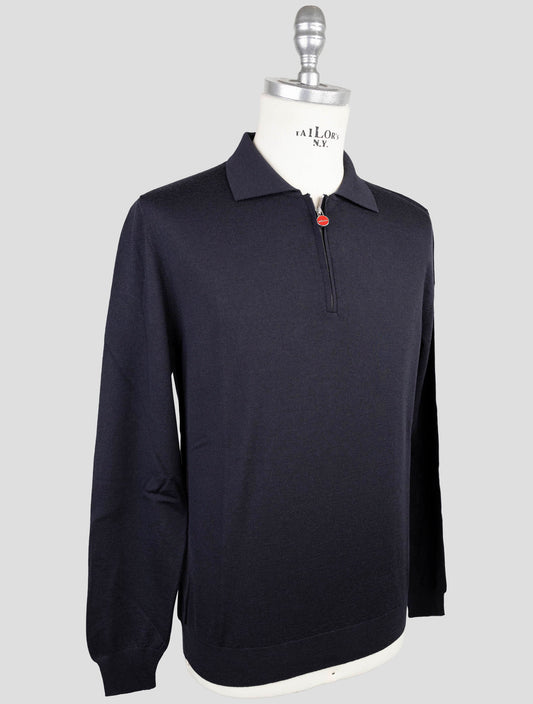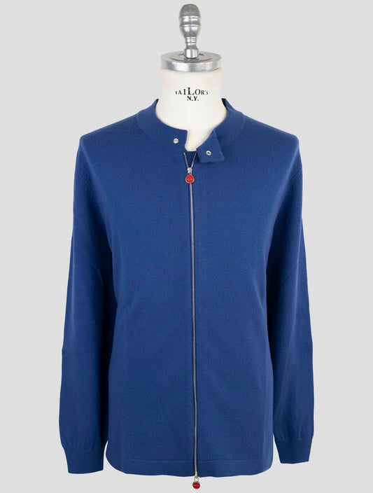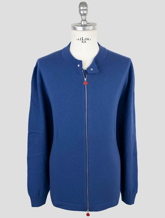 Kiton Premium Blue Wool Full Zip Sweater - Italian Luxury