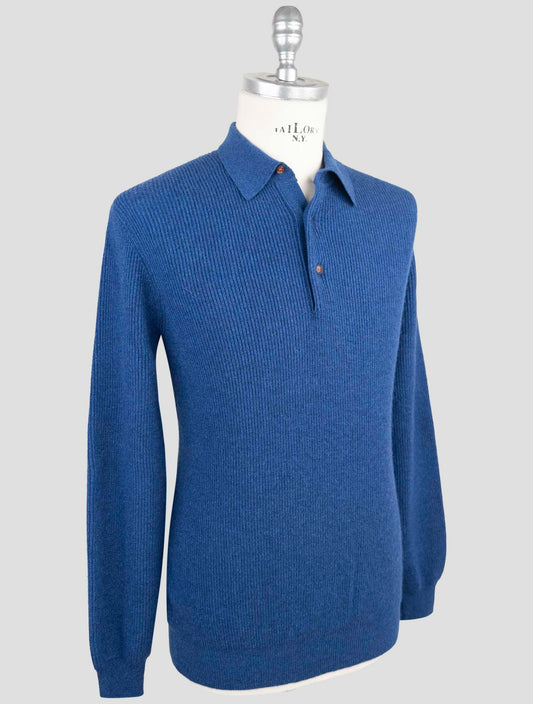 Kiton Premium Blue Cashmere Polo Sweater - Italian Luxury