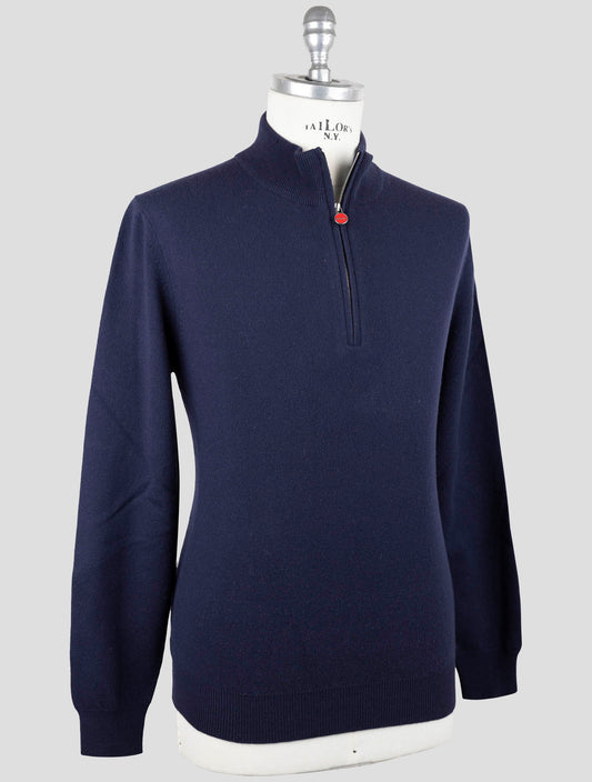 Kiton Premium Blue Wool Half Zip Sweater - Italian Crafted