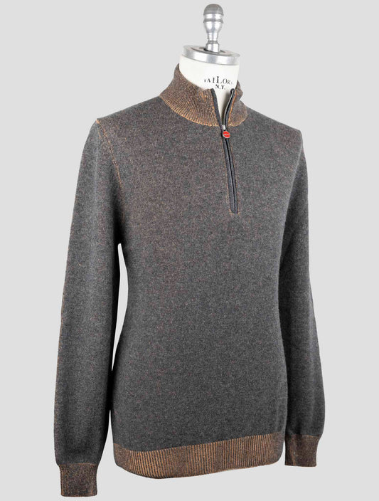 Kiton Men's Premium Gray Cashmere Full Zip Sweater Italian Made