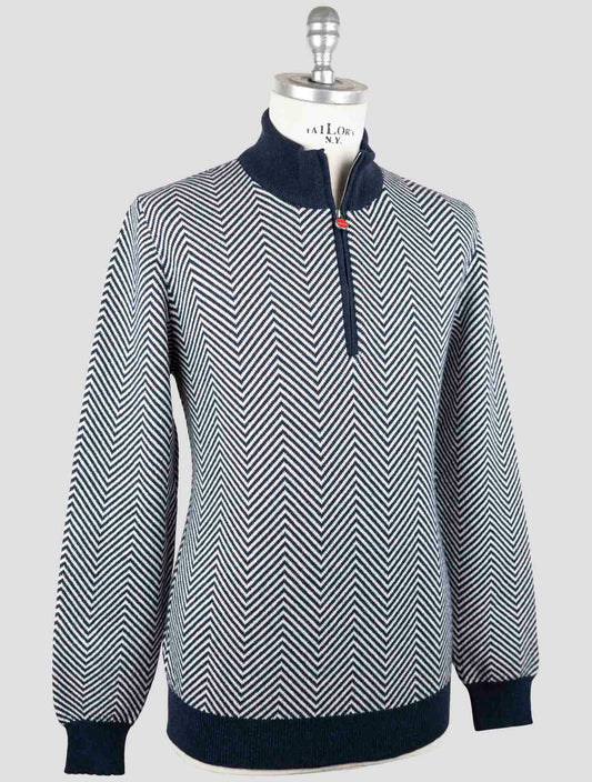 Kiton Men's Pure Cashmere Half-Zip Sweater Blue White Italian