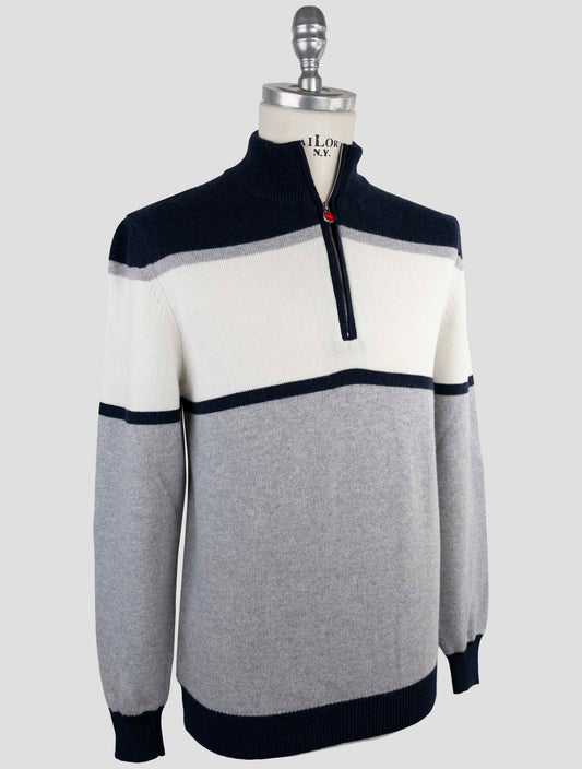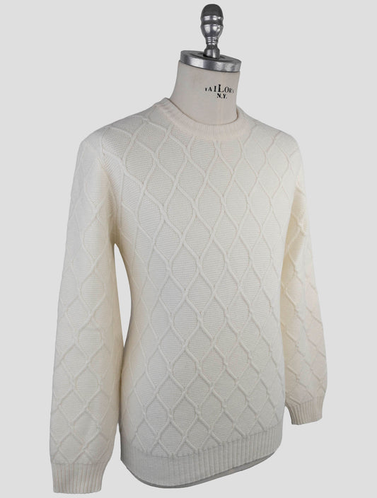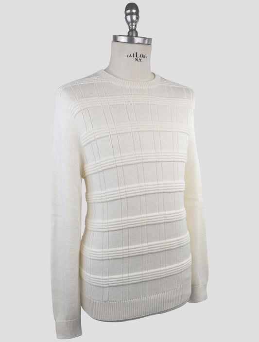 Kiton Italian Pure Wool Crewneck Sweater White Textured Knit