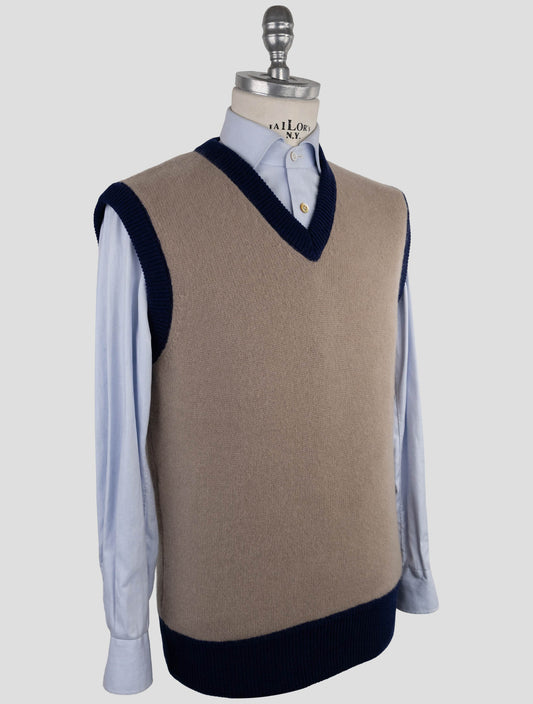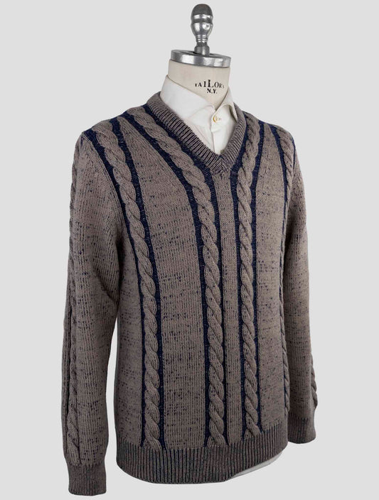 Kiton Pure Cashmere V-Neck Sweater Brown Italian Handmade