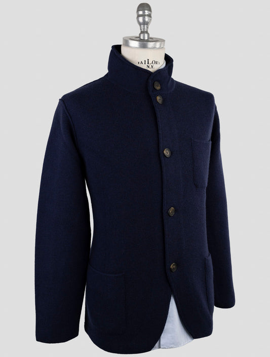 Kiton Premium Cashmere Cardigan Blue Textured Italian Luxury