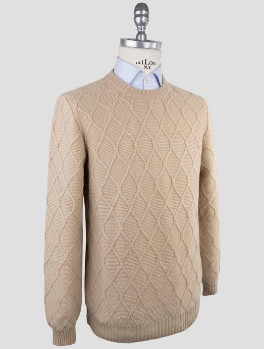 Kiton Men's Beige Cashmere Crewneck Sweater - Italian Textured