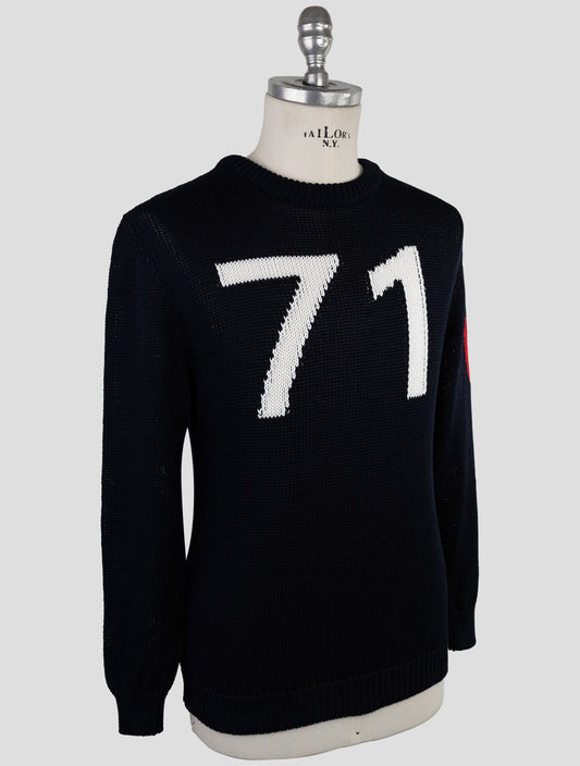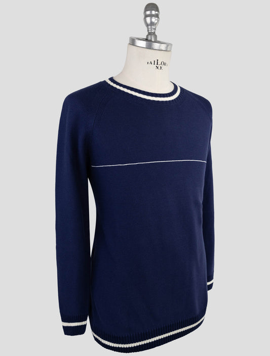 Kiton Textured Cotton Crewneck Sweater Dark Blue Italian Luxury