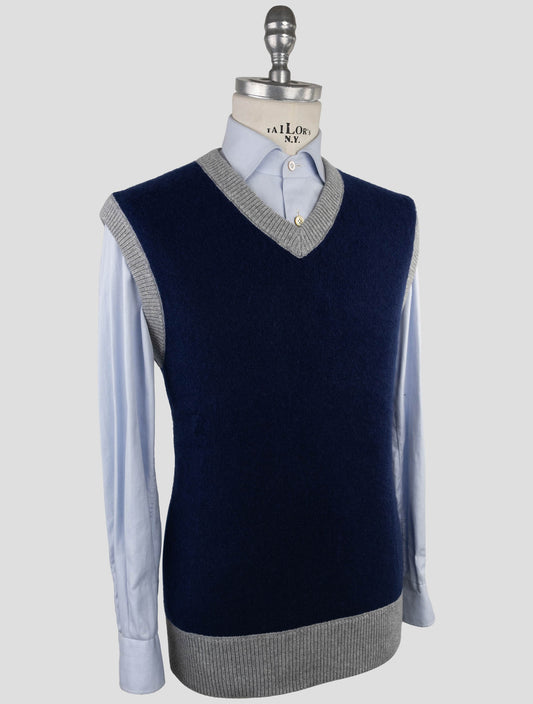 Kiton Men's Cashmere V-Neck Sweater Blue Gray Italian Made