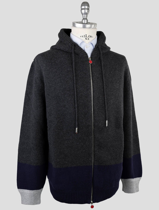 Kiton Italian Wool Full-Zip Hoodie Sweater - Multicolor Textured