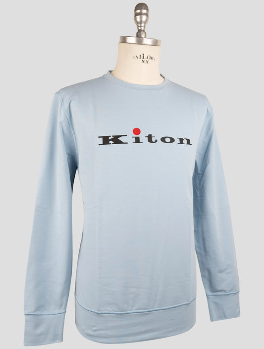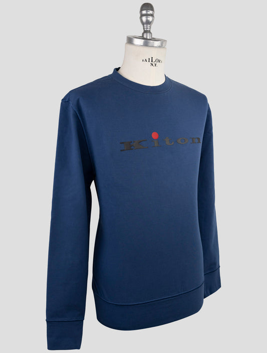 Kiton Premium Blue Cotton Crewneck Sweater Italian Handmade