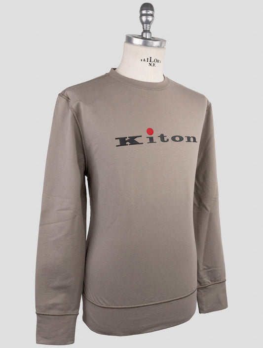 Kiton Premium Taupe Cotton Crewneck Sweater - Italian Luxury