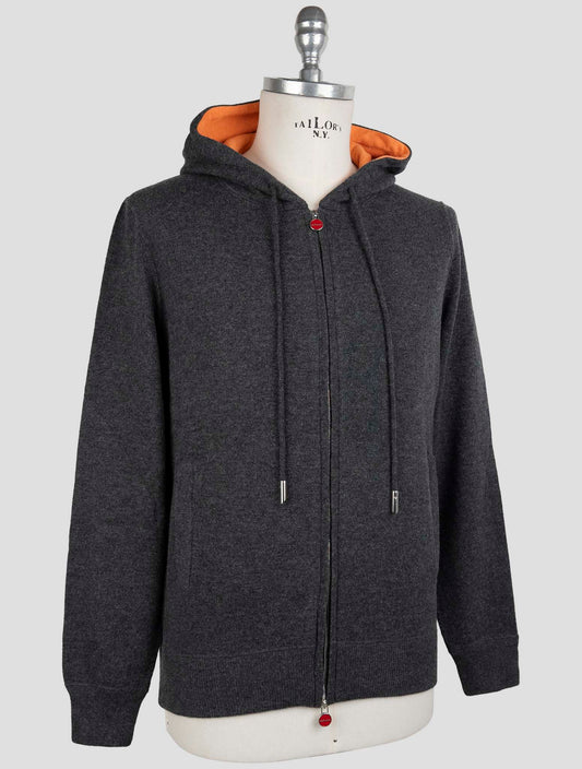 Kiton Men's Cashmere Full Zip Hoodie Sweater - Dark Gray Italian