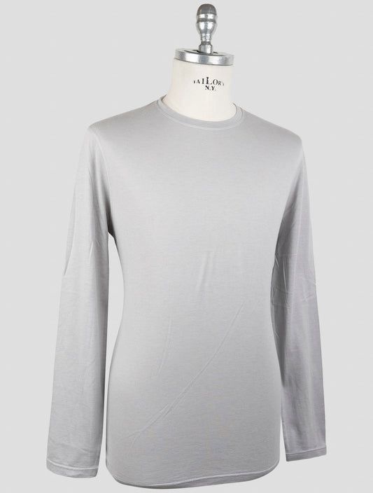 Kiton Gray Cotton Cashmere Crewneck Sweater Italian Luxury Men