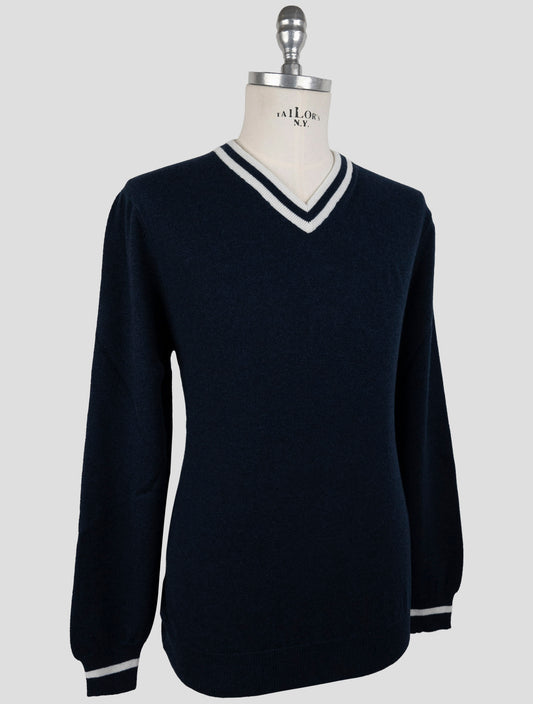 Kiton Men's Blue Cashmere V-Neck Sweater - 100% Pure Italian