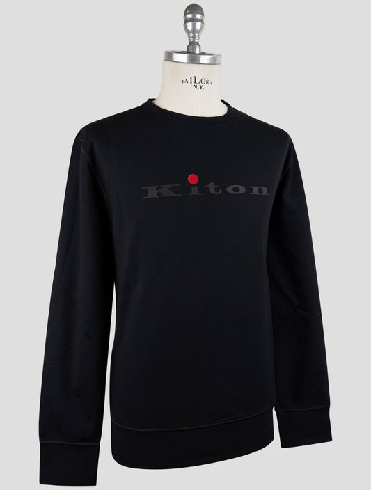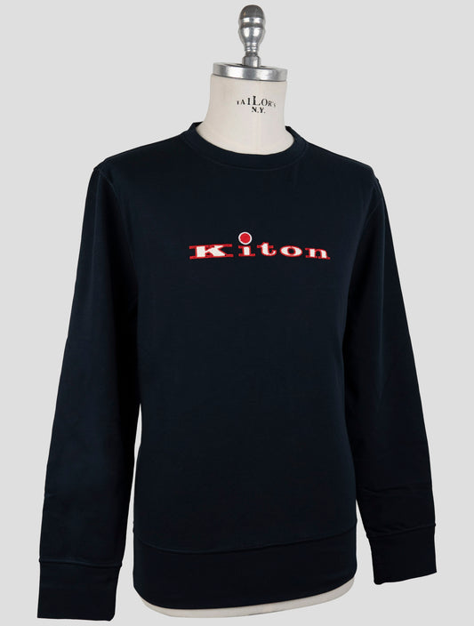 Kiton Dark Blue Cotton Crewneck Sweater - Italian Luxury Menswear