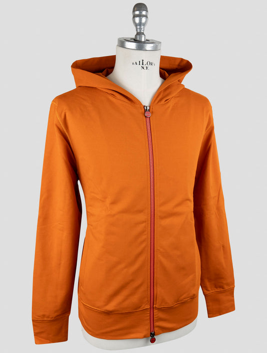 Kiton Orange Cotton Elastane Full Zip Sweater - Made in Italy