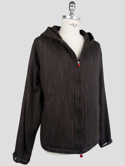 Kiton Brown Virgin Wool Silk Linen Full Zip Shirt UMBI