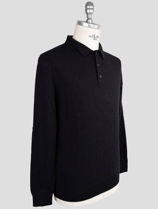 Kiton KNT Black Virgin Wool Polo Sweater - Italian Handmade