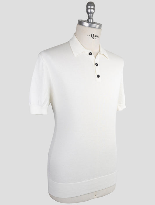 Kiton KNT White Virgin Wool Silk Polo Sweater Handmade Italy