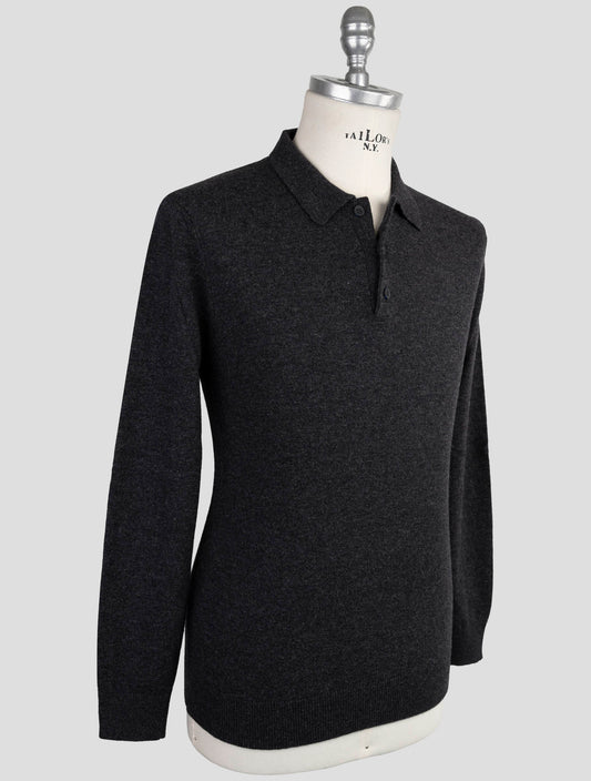 Kiton KNT Gray Virgin Wool Polo Sweater - Handmade Italy