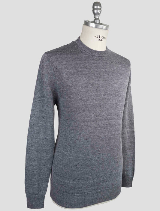Kiton KNT Gray Linen Cotton Crewneck Sweater - Handmade Italian