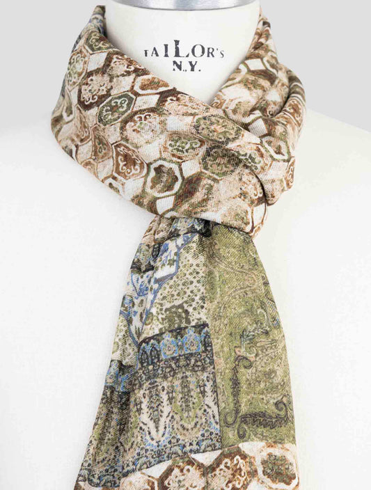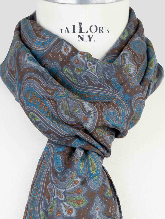 Kiton Handmade Paisley Modal Cashmere Scarf Multicolor 70x200cm