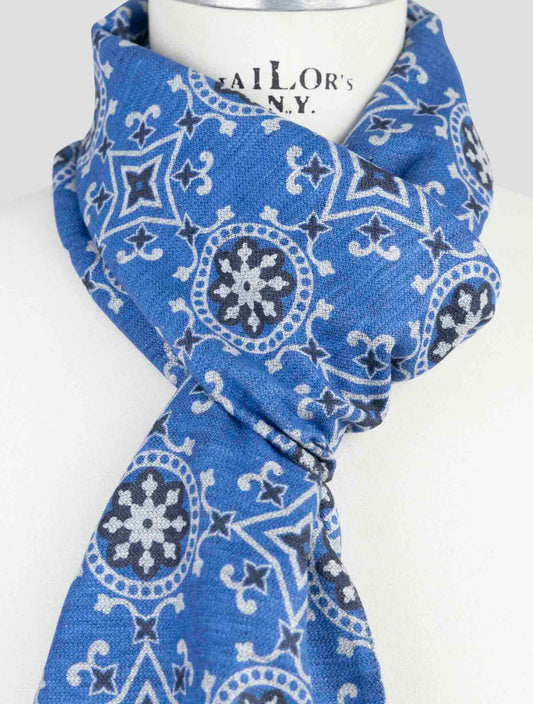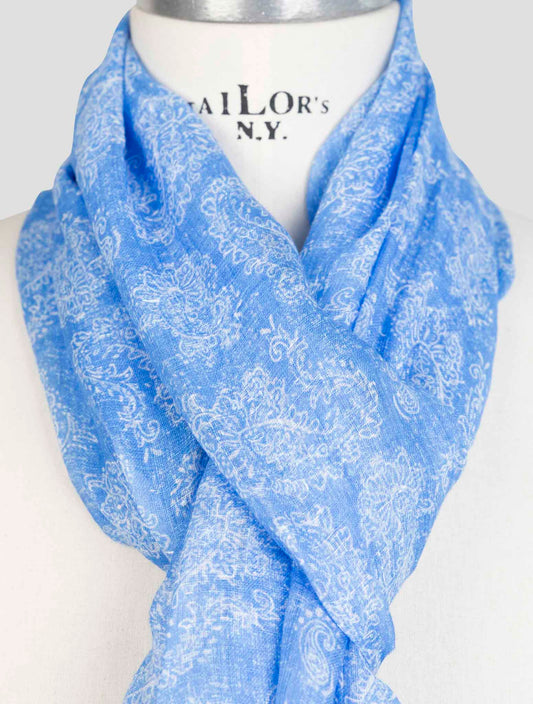Kiton Light Blue Linen Paisley Scarf - 100% Handmade Italian