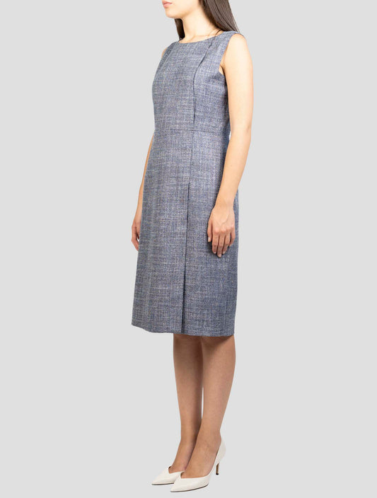 Kiton Blue Virgin Wool Silk Linen Dress - Handmade Italian