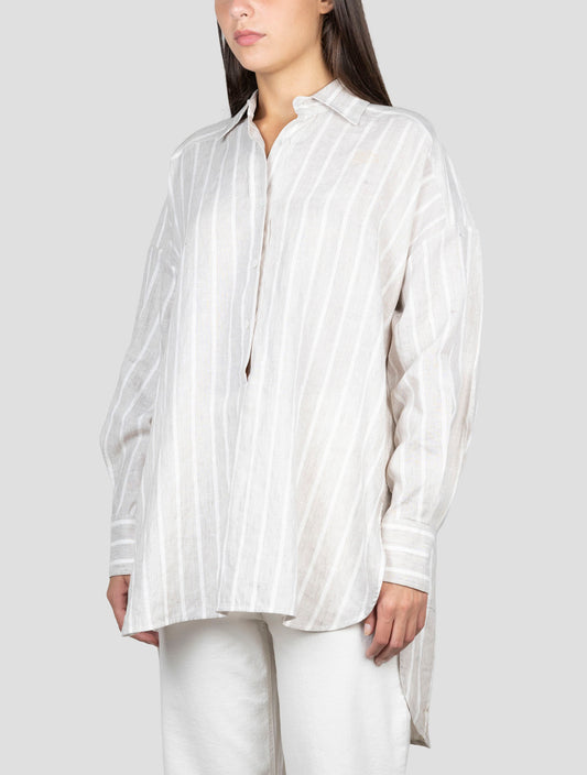 Kiton Handmade Linen Striped Shirt Women Gray White Italian