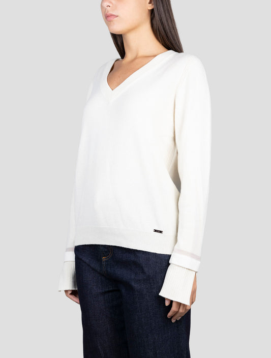 Kiton Handmade White Cashmere V-Neck Sweater - Women's Italian