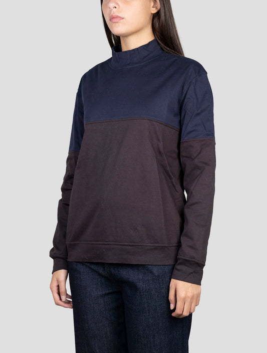 Kiton Women's Premium Cotton Half-Neck Sweater Blue Black