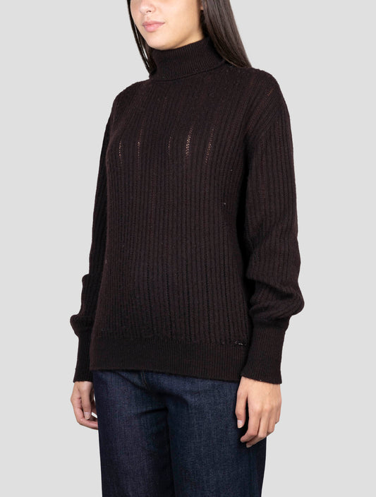 Kiton Brown Cashmere Silk Turtleneck Sweater Women Handmade Italy