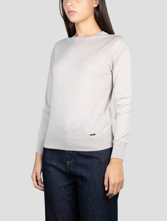 Kiton Women's Beige Wool Crewneck Sweater - Handmade Italian