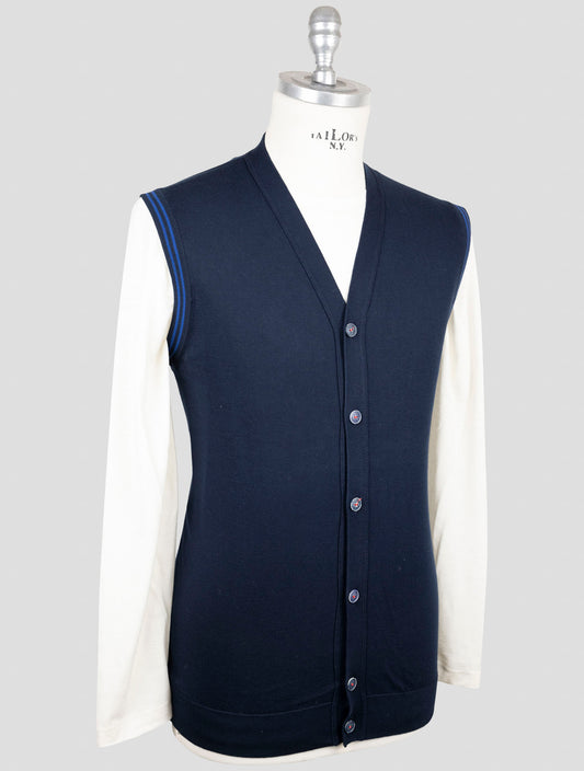 Kiton Premium Cotton Gilet Blue - Italian Handmade Sleeveless Vest