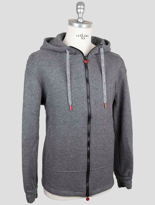 Kiton Premium Cashmere Full Zip Sweater Gray Handmade Italian
