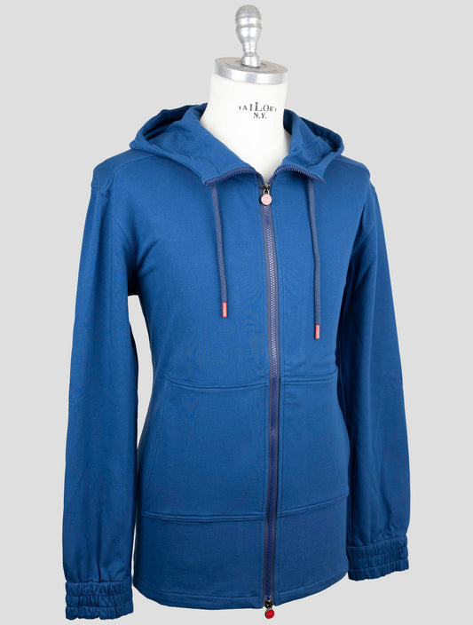 Kiton Blue Cotton EA Zip Hoodie - Handmade Italian Luxury