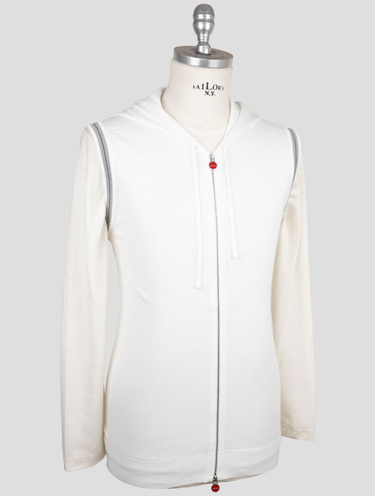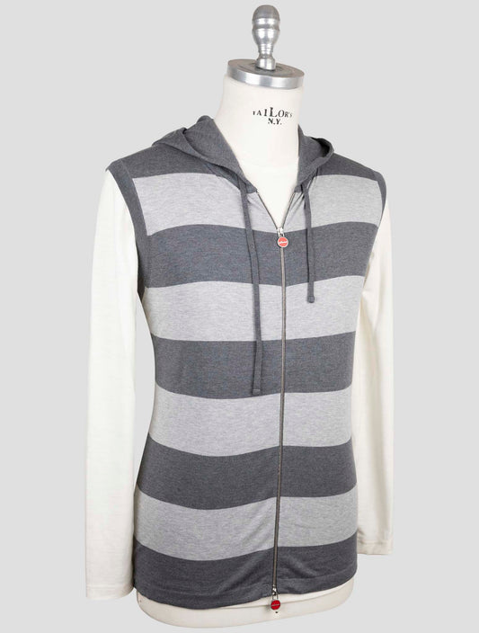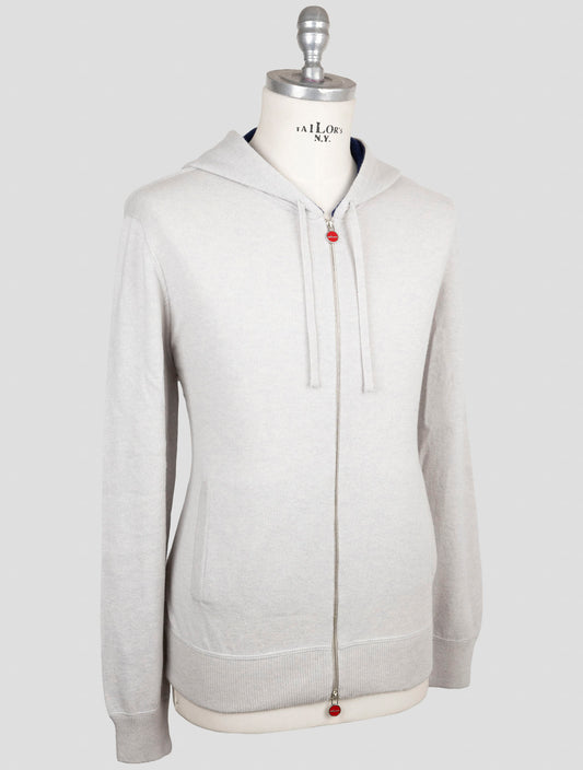 Kiton Cotton EA Full Zip Hoodie Light Gray Italian Handmade