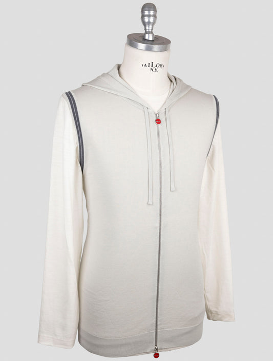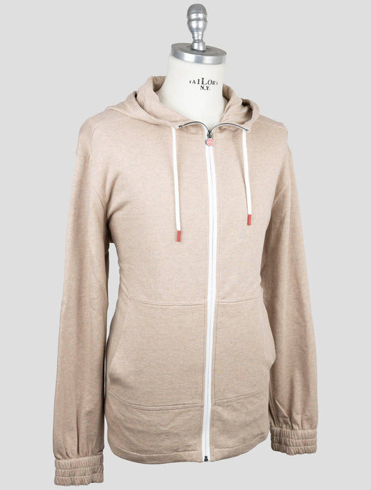 Kiton Cotton Cashmere Zip Hoodie Beige Handmade Italian Luxury