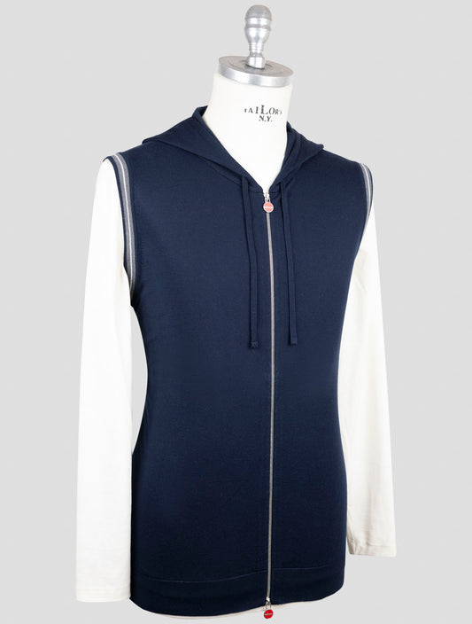 Kiton Navy Cotton Hooded Gilet - Italian Handmade Full Zip Vest