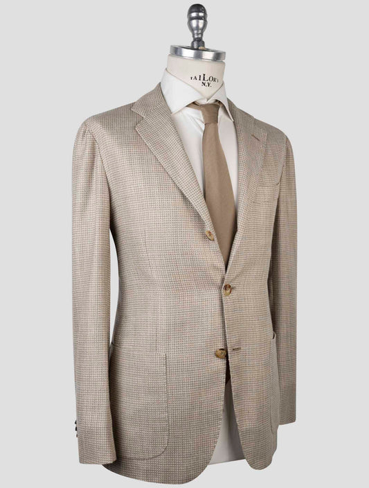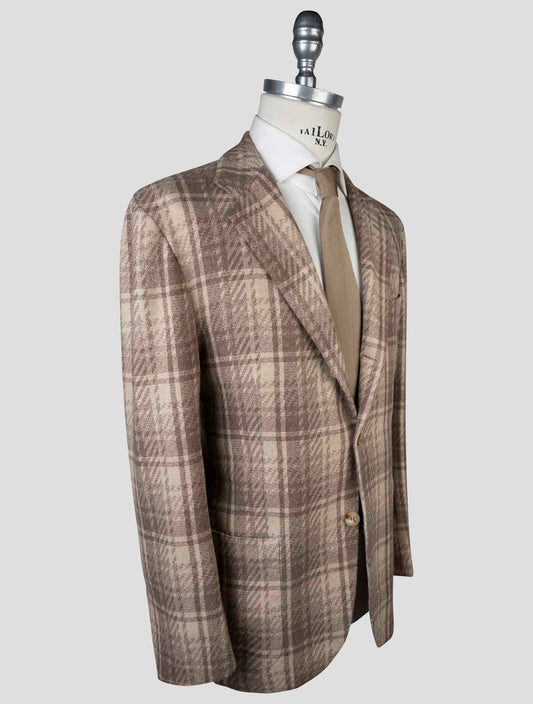 Kiton Men's Beige Check Cashmere Silk Blazer - 3 Button Italian