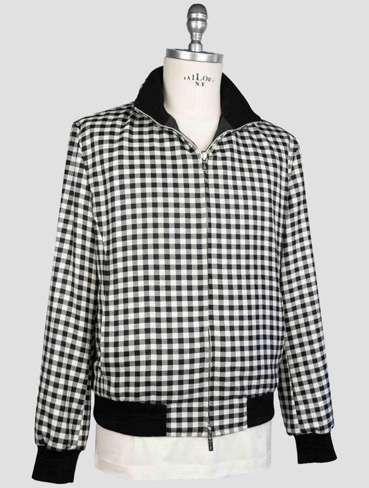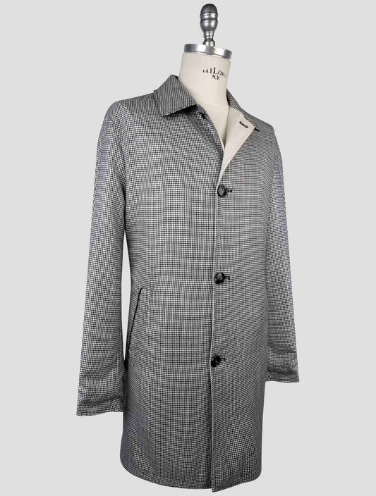 Kiton Reversible Cashmere Silk Coat Black White Geometric