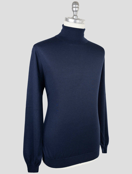 Kiton Cashmere Silk Turtleneck Sweater Dark Blue Italian