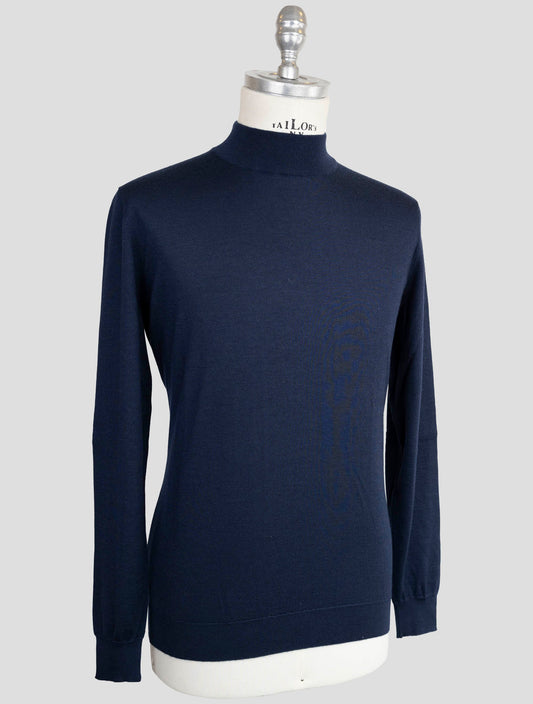 Kiton Blue Cashmere Silk Half Neck Sweater - Italian Handmade